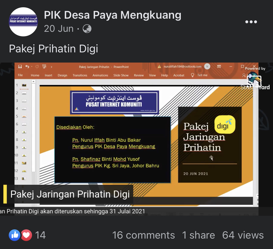 • Menghebahkan tawaran pakej prihatin digi.