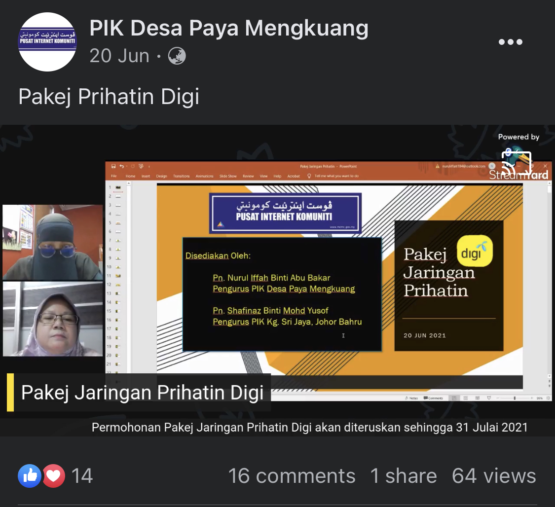 • Memberi pendedahan dan menghebohkan tawaran pakej prihatin digi kepada komuniti berkenaan bantuan rebat bagi pembelian peranti baru.