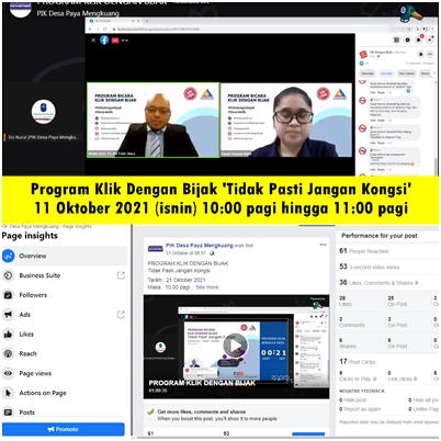 Perkongsian ini disiarkan secara langsung melalui “Facebook Page” PIK Desa Paya Mengkuang di mana pihak MCMC Ts. Md Tahir Musa berkongsi tips klik dengan bijak tentang ‘Tidak Pasti Jangan Kongsi.